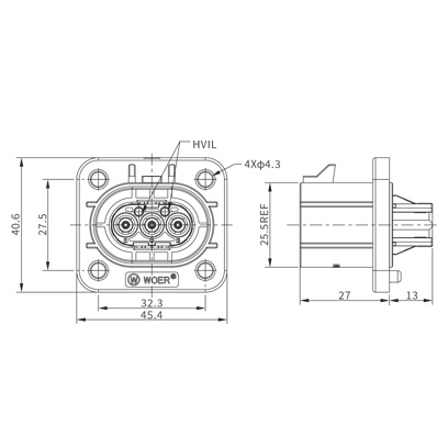 | 10 | HV28003*N04 | 不带高压互锁连接器插座/接4mm²非屏蔽线 | 4mm²非屏蔽线 |
