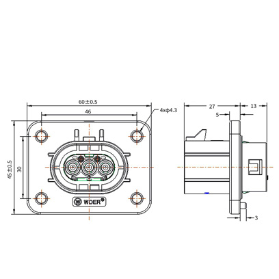 | 10 | HV280L03*N02 | 插座*键位无高压互锁插座 | 2.5mm²非屏蔽线 |