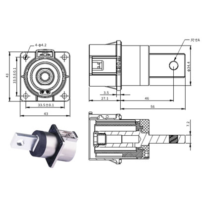■插针及插孔材料:铜合金