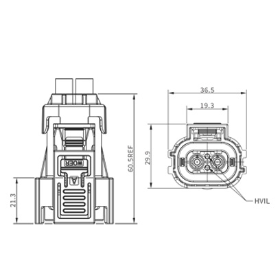 | 8 | HV28003*N02 | 不带高压互锁连接器插座/接2.5mm²非屏蔽线 | 2.5mm²非屏蔽线 |