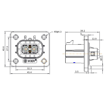 | 5 | HV280L02*N04 | 插座*键位无高压互锁插座 | 4.0mm²非屏蔽线 |